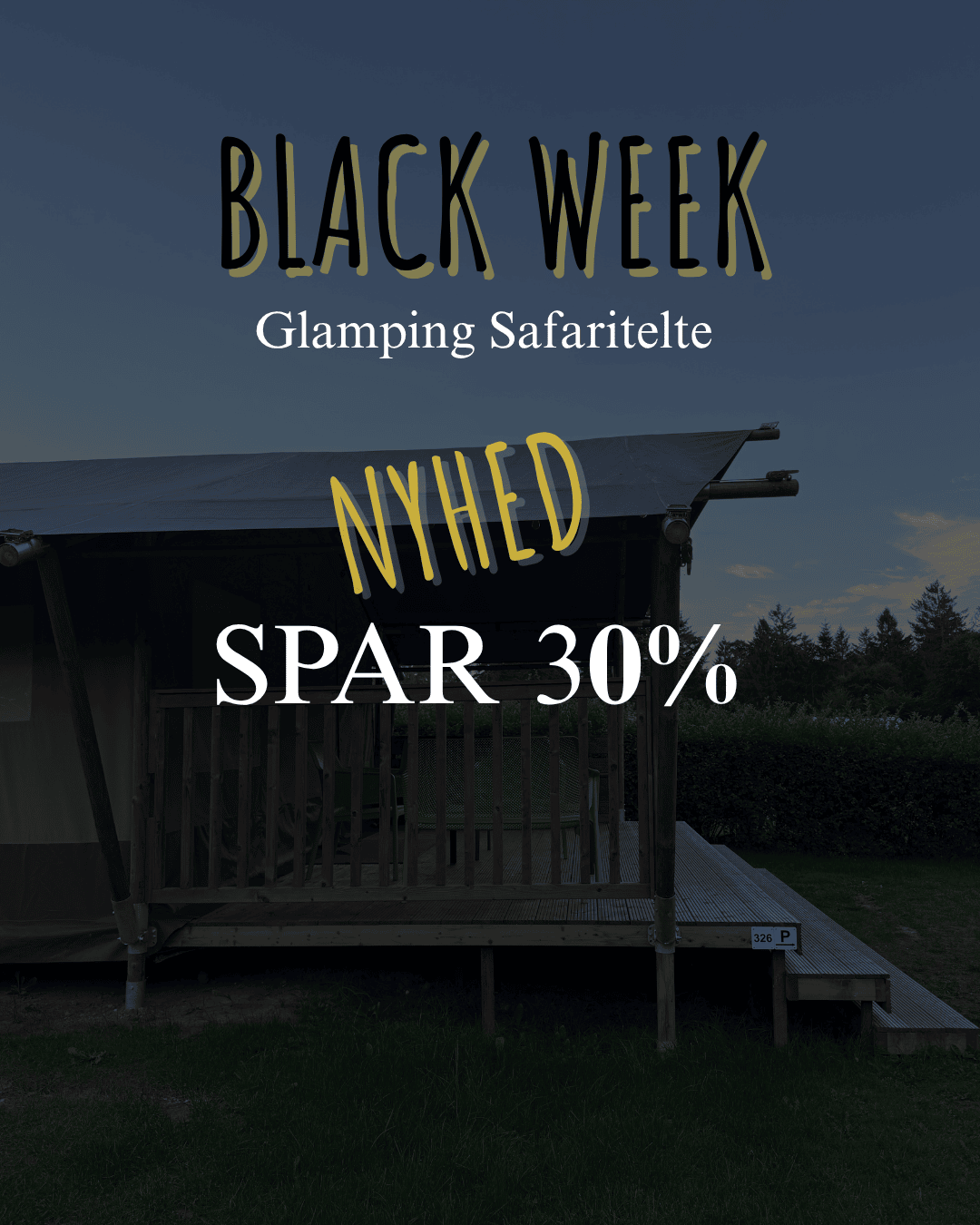Bliv blandt de første til at opleve vores nye glamping-safaritelte – og spar 30 % på jeres ophold ved minimum 3 overnatninger inkl. strøm. Her er plads til 5 personer.