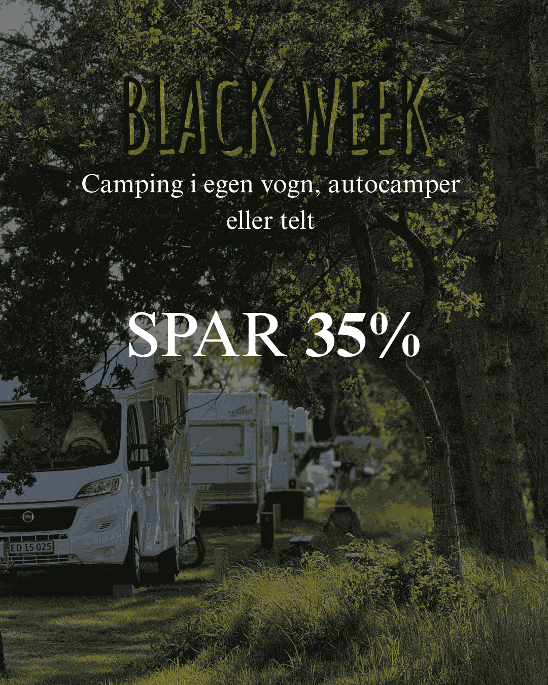 Book campingferien og spar hele 35 % på jeres ophold i egen campingvogn, autocamper eller telt ekskl. forbrug og miljøgebyr.